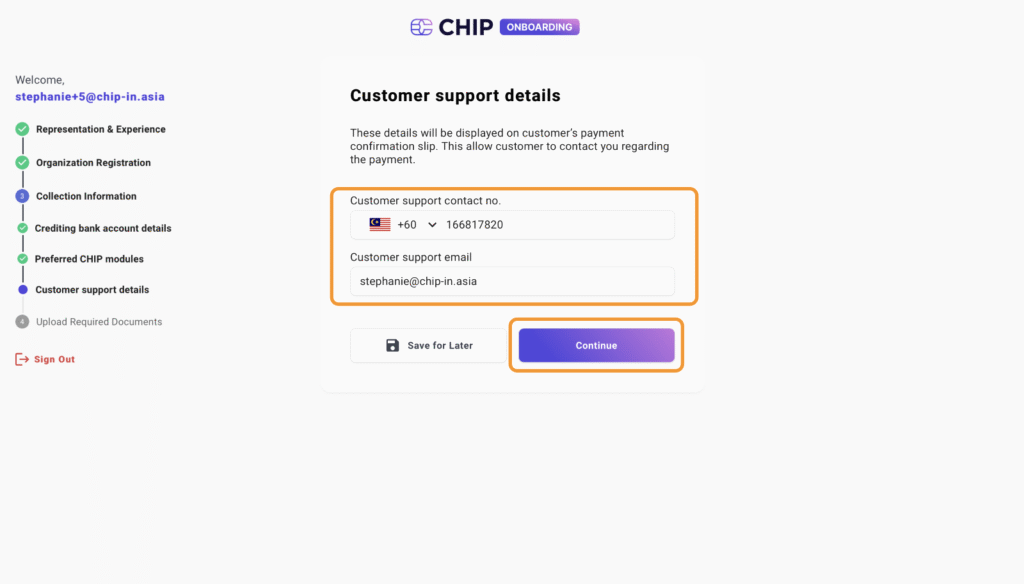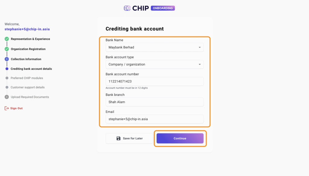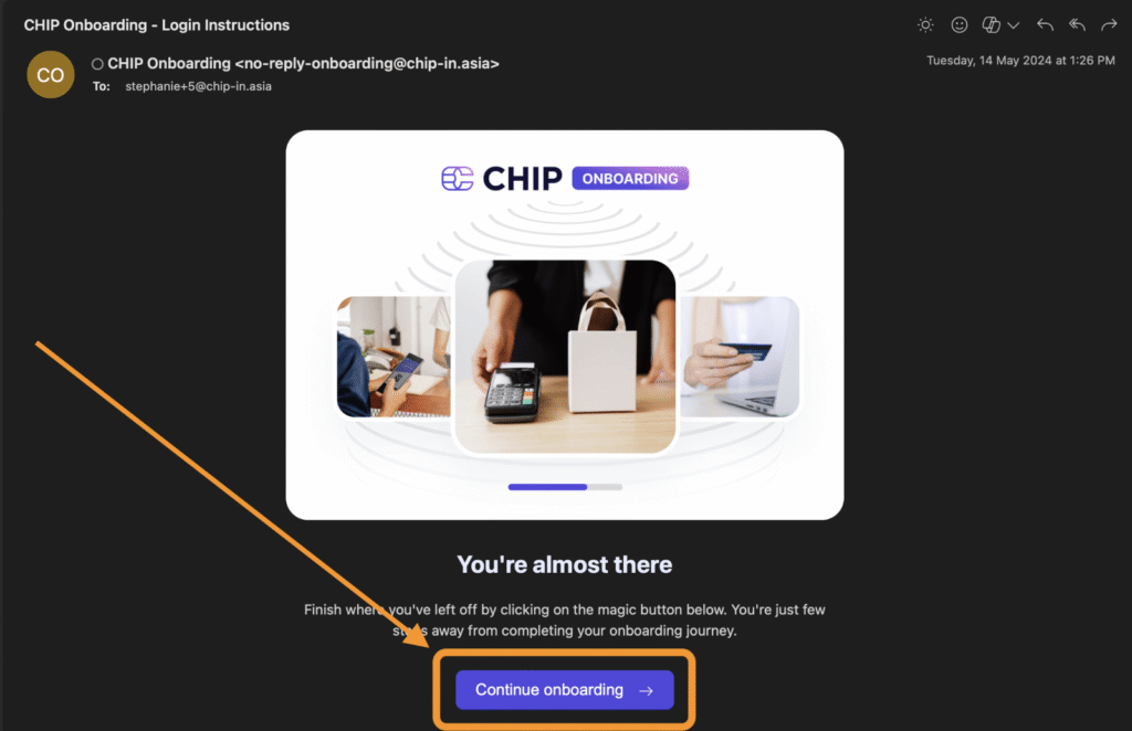 - Semak emel anda (termasuk folder spam/junk). Klik Continue Onboarding.
