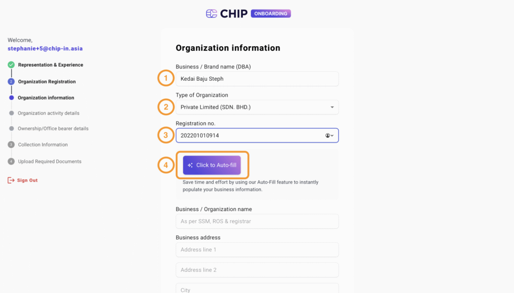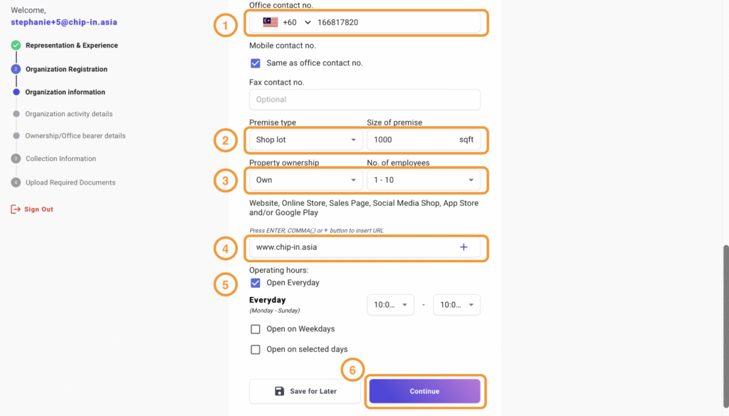 • Alamat perniagaan dan maklumat untuk dihubungiNote: Untuk FPX dan DuitNow, hanya perkara 1 hingga 3 diperlukan.